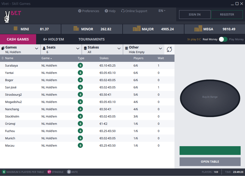 Vbet es una red armenia con un software muy bueno. Además del póker, también puede acceder a los casinos, apuestas deportivas, belote, deportes de fantasía y apuestas en piscinas. La mayoría de la población de esta sala está compuesta por jugadores de Oriente Medio.